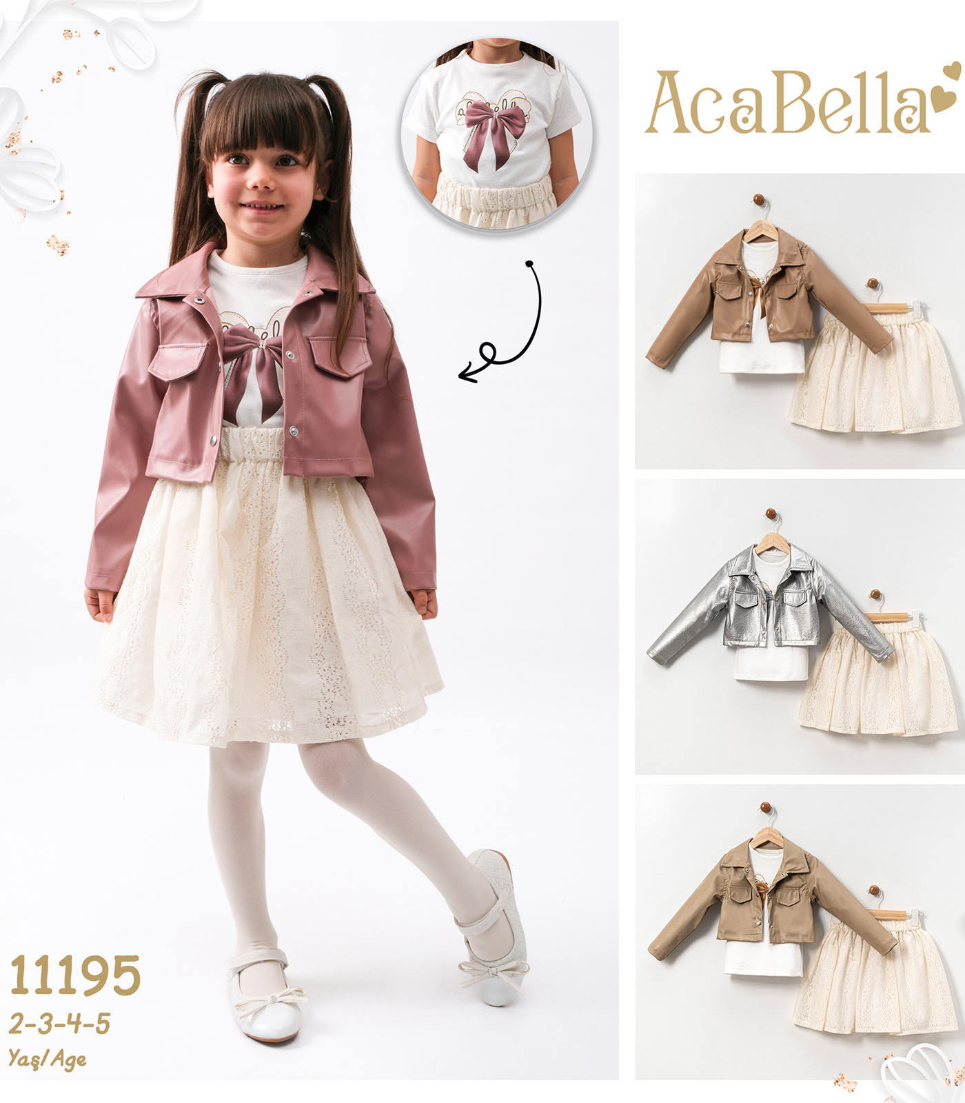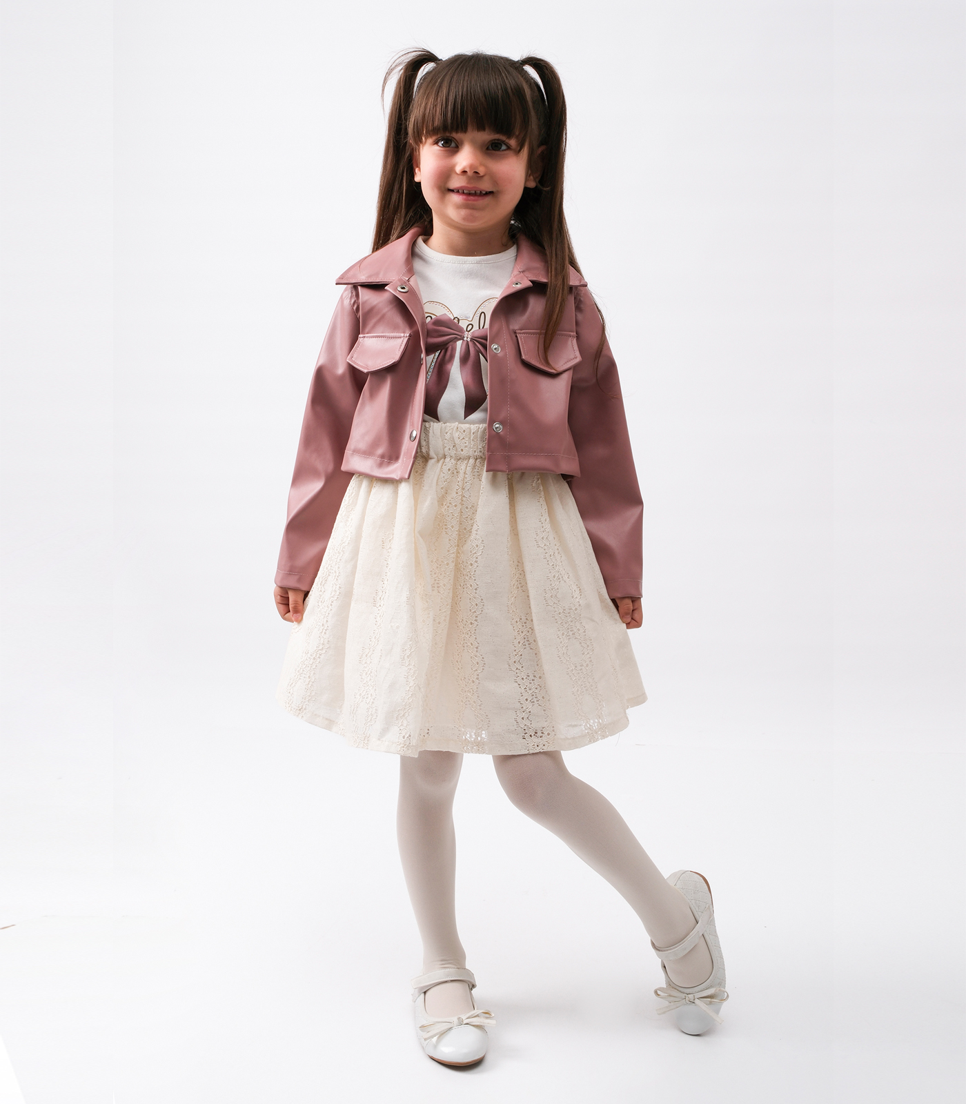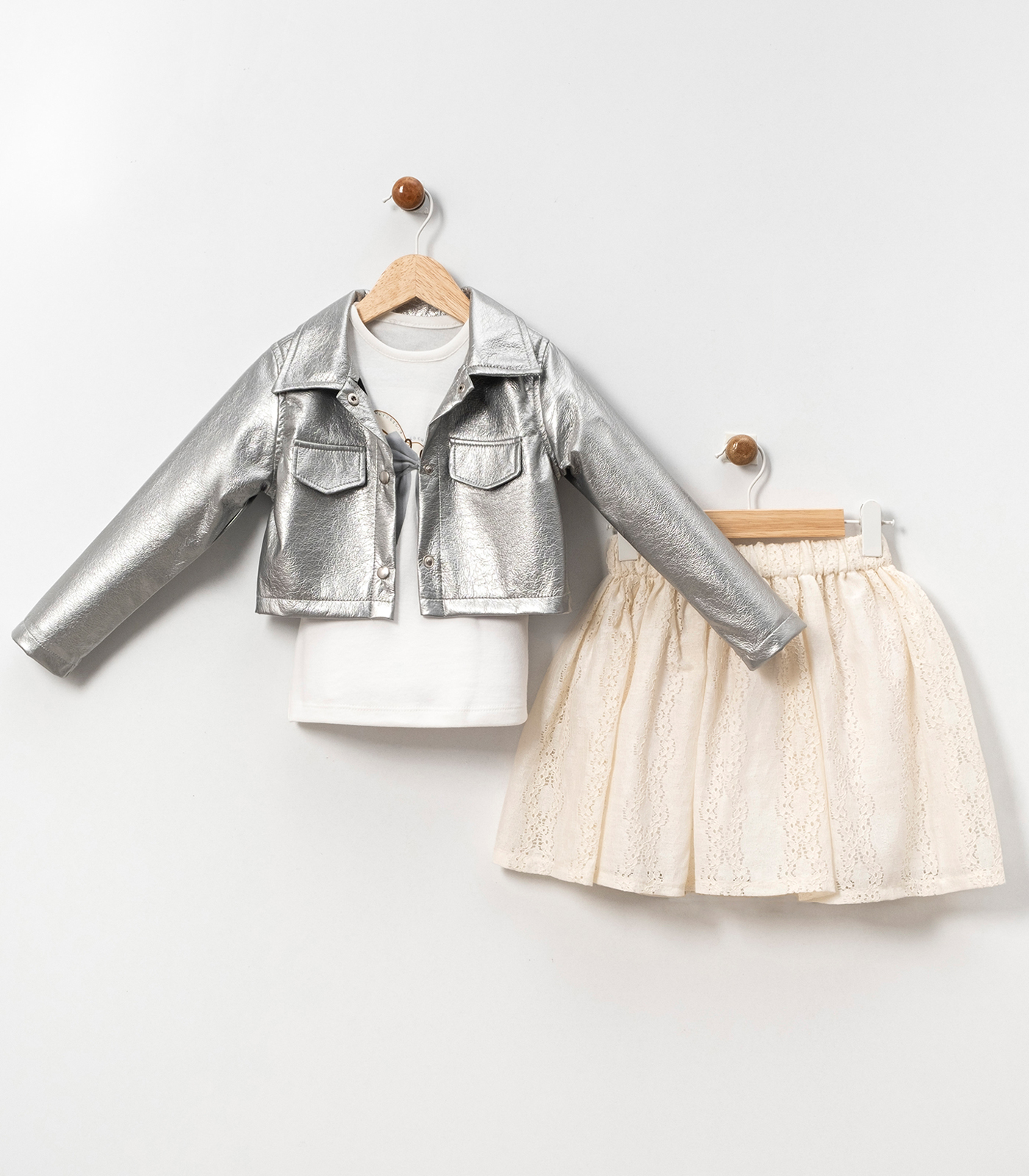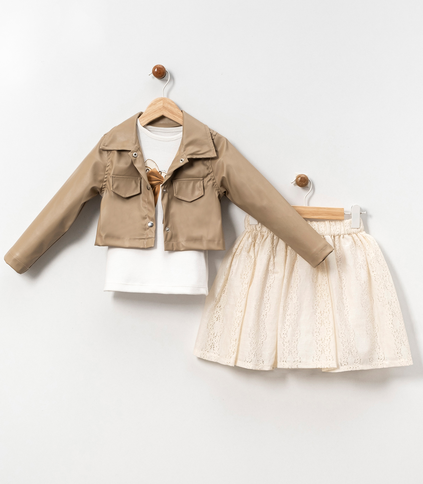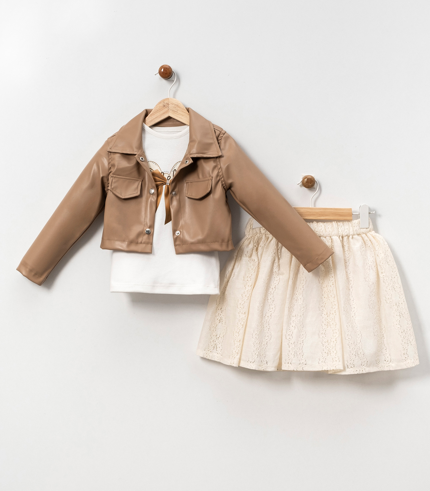 Deri Ceket ve Dantel Etekli Üçlü Takım