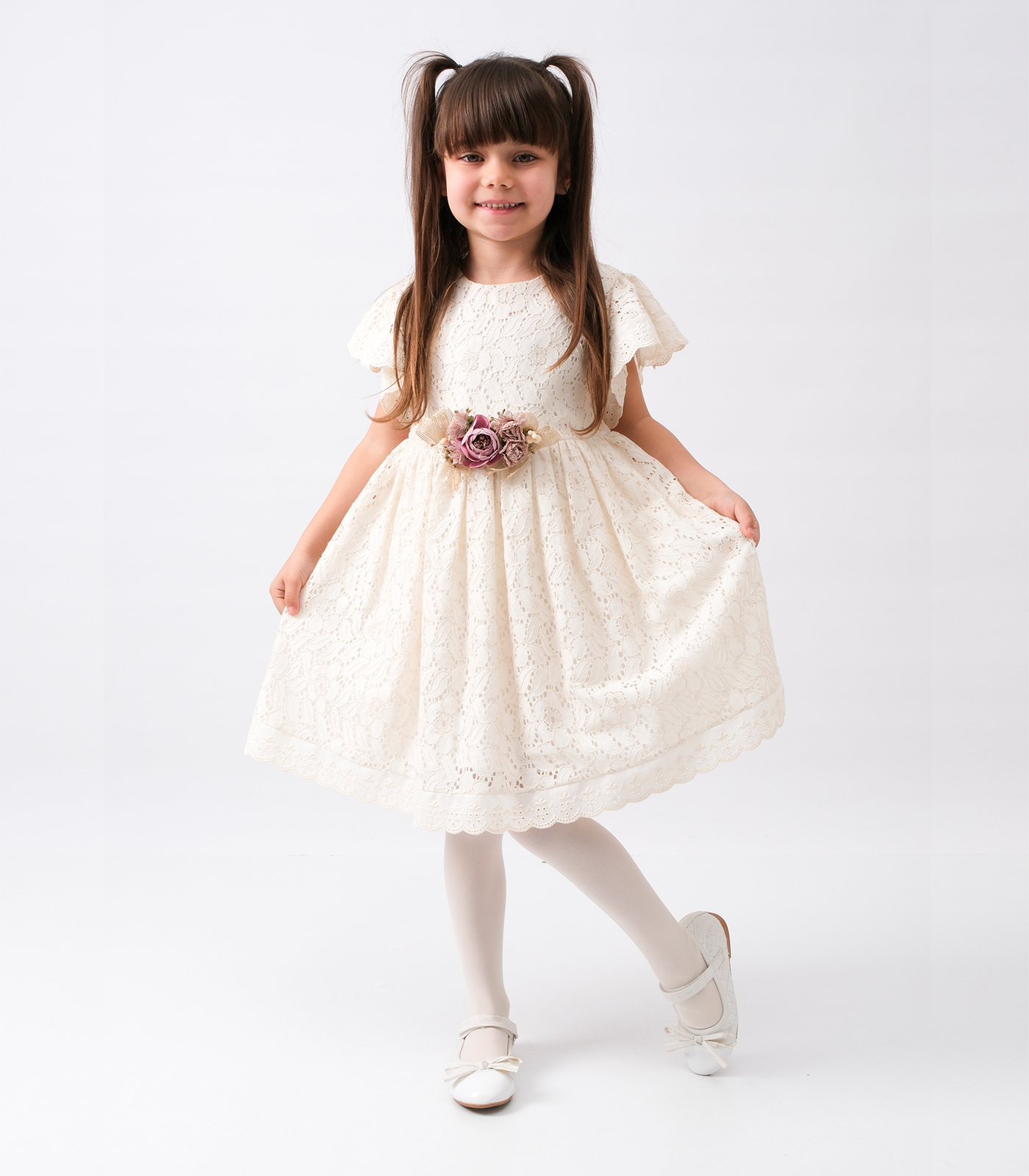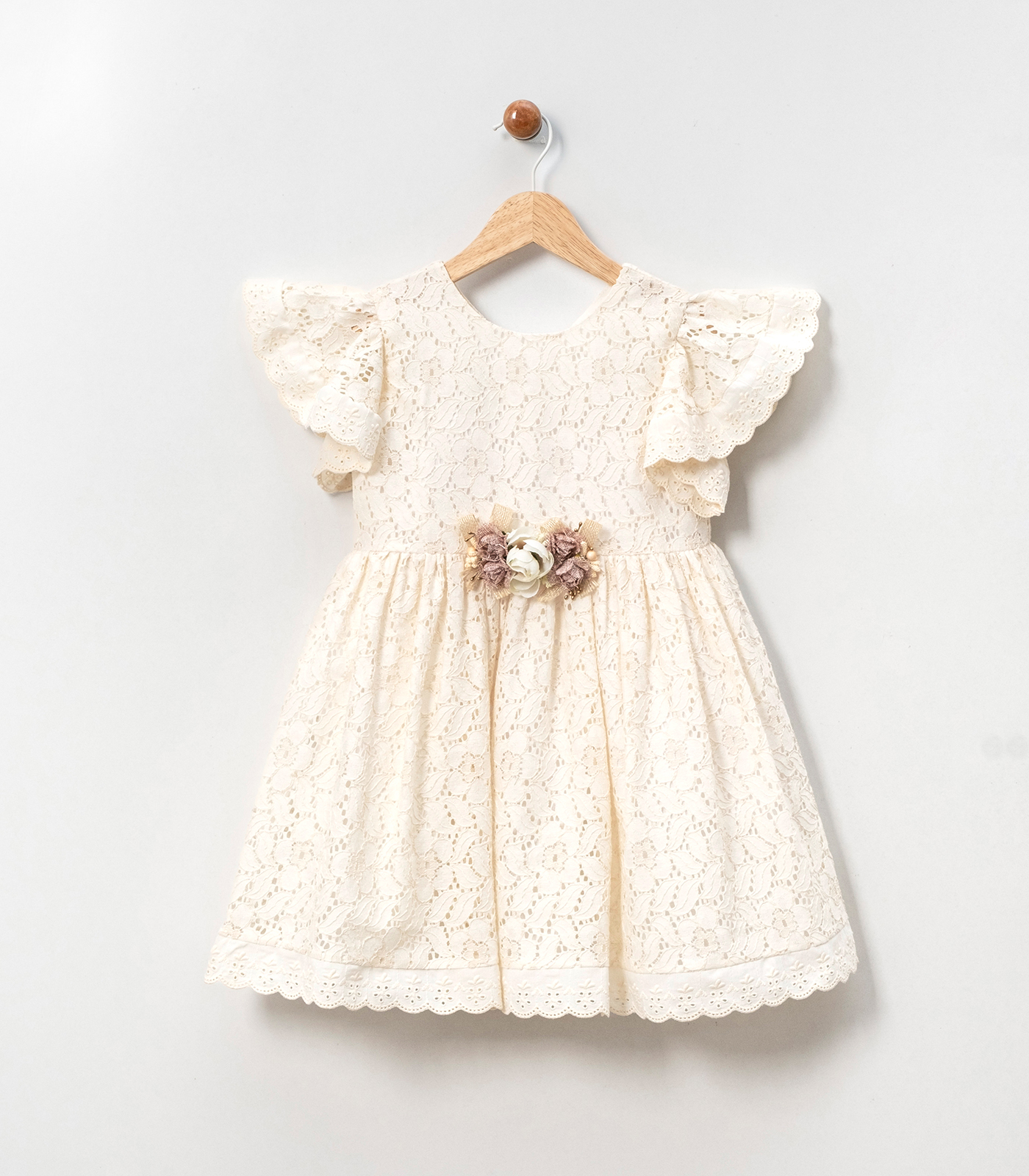 Pamuk Dantelden Üretilmiş Brode Şeritli Elbise